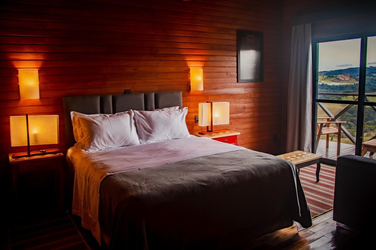 Os chalés boutique estão situadas ao redor dos vinhedos com vistas espetaculares das montanhas. Construídas com madeiras e pedras da região para dar um ar sofisticado da nossa Serra Catarinense. Iremos dispor de cinco modelos adaptando-os ao tamanho da sua família e gosto. Todas elas disporão de lareira com lenha, churrasqueiras, deck, paredes, pisos e forro térmico, hidromassagem, piso aquecido nos banheiros, ar condicionado, Tv 55" com canais múltiplos, wi-fi e adegas para vinhos e espumantes.